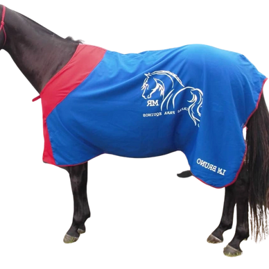 Capa elegante confeccionada principalmente con telas suaves y detalles de alta calidad, ideal para realzar la presencia del caballo en eventos y competencias. Su diseño estilizado combina estética y funcionalidad, brindando un ajuste cómodo sin restringir el movimiento